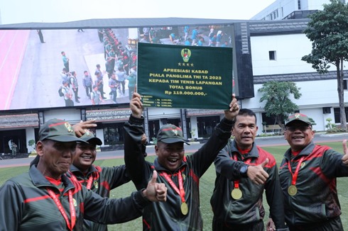 Jakarta, Sekawanbaru.com – TNI AD kembali meraih predikat juara umum serta memboyong Piala Bergilir dan piala tetap Panglima TNI untuk ke-16 kalinya. Atas prestasi tersebut Kepala Staf Angkatan Darat (Kasad) Jenderal TNI Dr. Dudung Abdurachman mengapresiasi keberhasilan Kontingen TNI Angkatan Darat yang telah berhasil mempertahankan predikat Juara. Untuk itu, Kasad menggelar acara khusus untuk menyampaikan apresiasinya kepada Kontingen TNI AD yang berjumlah 257 orang, terdiri dari para atlet, pelatih dan official, bertempat di Lapangan Upacara Mabesad Jakarta, Senin (14/8/2023).