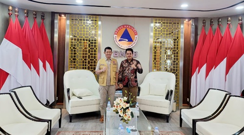 Kedatangan Pria Dua anak ini disambut baik oleh Kepala BNPB RI, Letnan Jenderal TNI Suharyanto,S.Sos.,M.M di Ruang kerjanya.