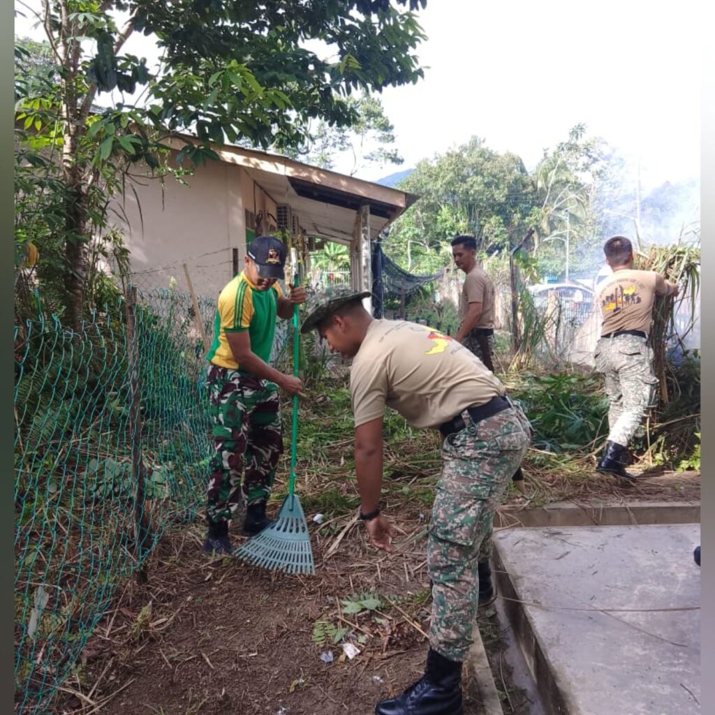 Kapuas Hulu, Kalbar – Sekawanbaru.com – Satgas Pamtas Yonarmed 10/ Bradjamusti Pos Lubuk Antu bersama Tentara Diraja Malaysia, instansi setempat dan warga masyarakat melaksanakan kegiatan karya bhakti membersihkan lingkungan dari sampah dan rumput-rumput liar. Selasa kemarin ( 29/08/2023)