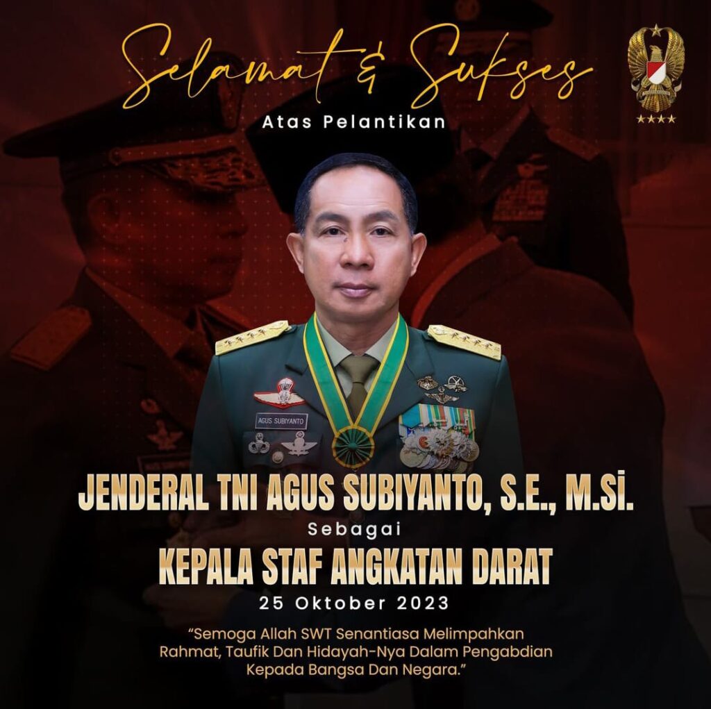 Pada saat yang sama, Agus naik pangkat dari letnan jenderal menjadi jenderal.