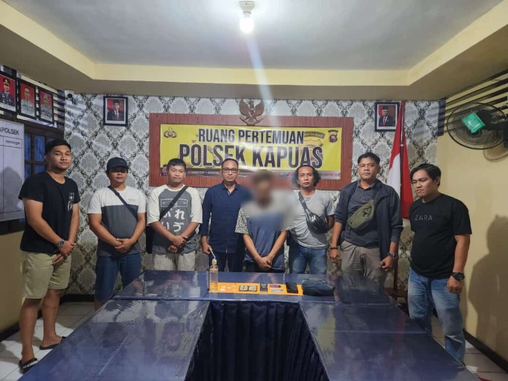 Kapolsek Kapuas, Iptu Marianus menerangkan, kronologis penangkapan tersangka DS, mendapatkan informasi dari masyarakat terkait dengan pengedar narkotika jenis sabu sekira pukul 17.55 Wib Personil Polsek Kapuas melakukan Lidik dan segera menuju TKP.