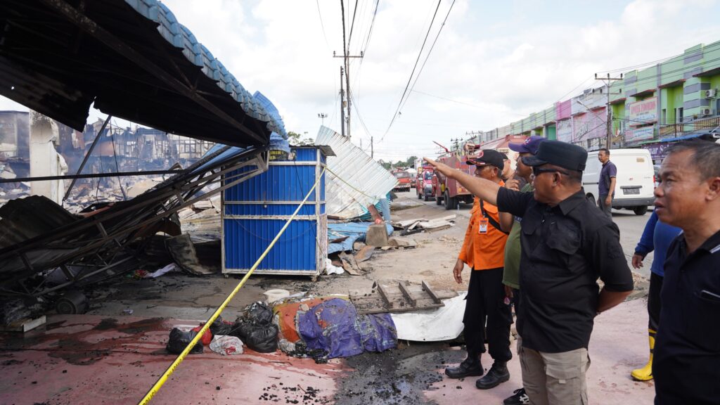 SANGGAU – Sekawanbaru.com – Pasca terjadinya kebakaran yang menghanguskan 28 ruko yang berada di satu blok pasar yang diduga berawal dari konsleting listrik, Pj Bupati Sanggau Suherman meninjau korban kebakaran pasar Bodok yang menghanguskan 28 pintu rumah toko (Ruko) yang terjadi di Jalan Raya Bodok, Kecamatan Parindu, Kabupaten Sanggau, Kalimantan Barat, Sabtu (27/4/2024).