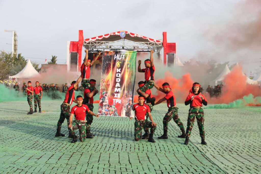 Upacara dihadiri Pj. Gubernur Kalbar, Kapolda Kalbar, Danlanud Supadio, Danlantamal XII/Pontianak, Ketua DPRD Provinsi Kalbar, Kajati Kalbar, PJU Kodam, para Komandan Satuan dan Kabalak jajaran Kodam XII/Tpr, pengurus Persit dan undangan lainnya.