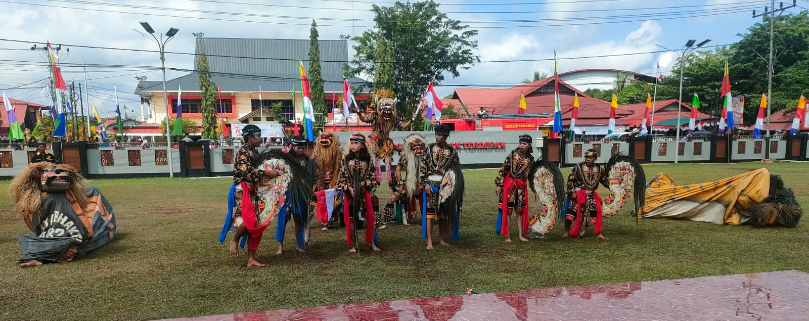SANGGAU- Sekawanbaru.com – Peringatan HUT RI Ke – 79 yang di adakan di Halaman Kantor Bupati Sanggau dimeriahkan dengan penampilan kesenian tradisional Kuda Lumping karya seni dari Desa Suka Mulya, Kecamatan Parindu, di bawah asuhan Paguyuban Jawa Guyub Gawe Guno (G3) kecamatan Kapuas dan bernaung di G3 Kabupaten Sanggau, Sabtu ( 17/8).
