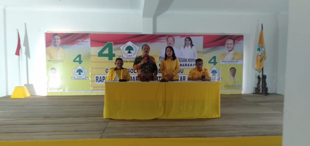 Ketua DPD Partai Golkar dalam Sambutannya mengatakan Rapat kerja ini merupakan langkah partai golkar untuk menghadapi pilkada yang sudah di depan mata, sekaligus untuk memperkenalkan dan mematangkan bakal calon Bupati Yohanes Ontot dan Wakil Bupati Sanggau Susana Herpena yang diusung oleh Partai Golkar.