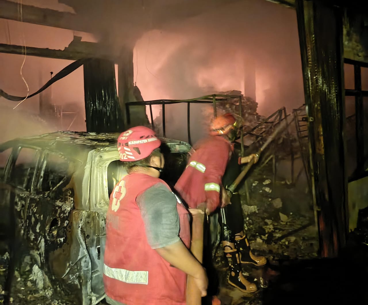 Ali menambahkan “ Api melahap bangunan gedung milik Dinas Kesehatan beserta tiga mobil yang terparkir diteras Gedung yang dipergunakan untuk Gudang Obat.”