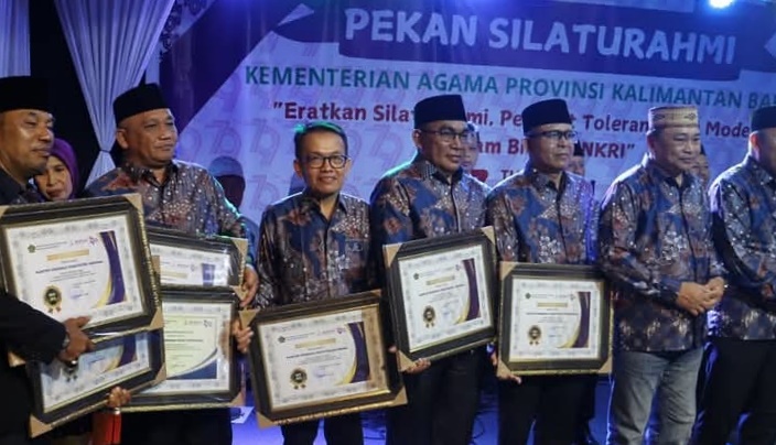 Penghargaan tersebut telah diserahkan langsung oleh Kepala Kanwil Kemenag Provinsi Kalbar, H. Muhajirin Yanis, kepada Kepala Kemenag Singkawang, H. Muhlis, pada malam penutupan rangkaian kegiatan Capacity Building dan Silaturahim HAB ke-79 di Halaman Kantor Kemenag Kabupaten Sambas, Sabtu malam (11/01/2025).