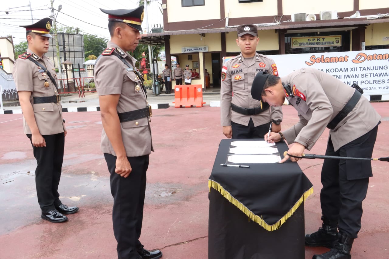 Dipimpin langsung oleh Kapolres Sanggau, AKBP Suparno Agus Candra Kusumah, IPTU Andreas Quinn Hartono Putra, resmi menyerahkan jabatannya kepada IPDA Miskun.