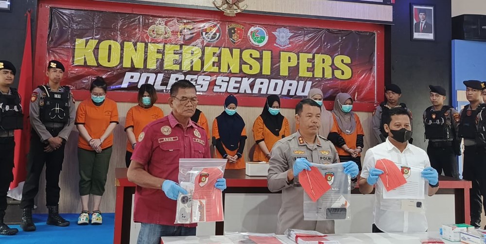 Kapolres Sekadau AKBP I Nyoman Sudama di dampingi Kasat Reskrim Iptu Kuswiyanto dan Kasi Humas AKP Agus Djunaidi mengungkapkan modus penipuan yang digunakan para tersangka. Sebanyak tujuh tersangka yang seluruhnya perempuan diamankan dalam kasus ini. Mereka berinisial NW, SS, WA, AS, IE, AN, dan SP. Polisi juga menghadirkan sejumlah barang bukti yang berkaitan dengan kasus tersebut.