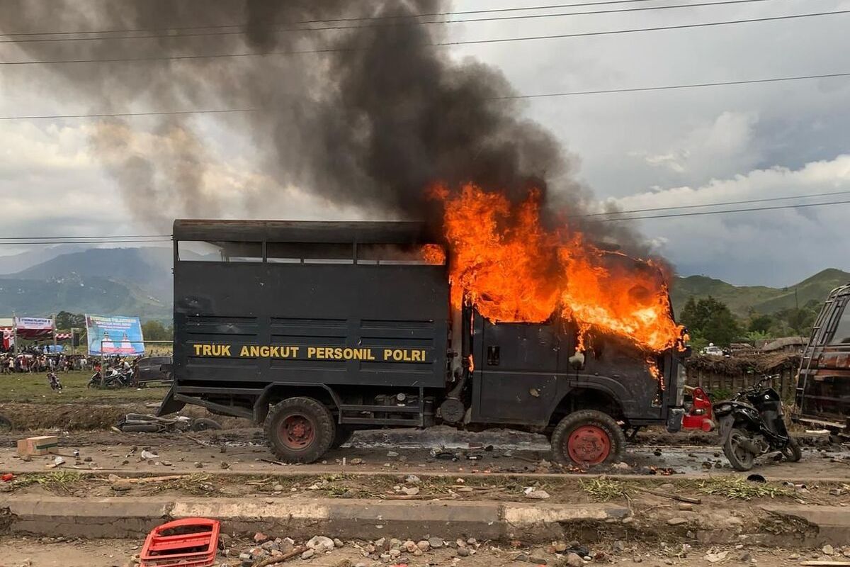 Heri menambahkan, massa semakin banyak dan brutal. Massa membakar dan merusak kendaraan yang berada di sekitar lokasi kejadian, termasuk kendaraan dinas milik Polres Jayawijaya.