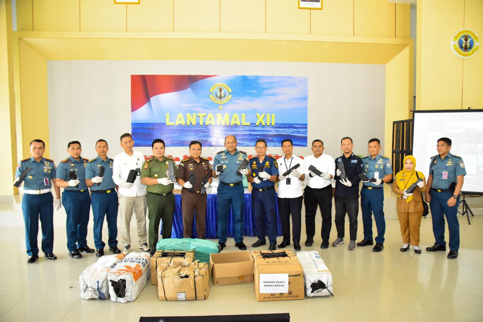 Hal senada disampaikan Komandan Lantamal XII, Laksamana Pertama TNI Dr. Hariyo Poernomo, M.Han saat menggelar konferensi pers di Gedung Malahayati Mako Satrol pada Senin (30/06)