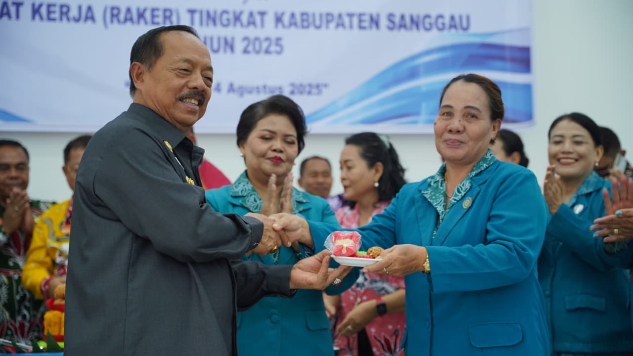 SANGGAU- Sekawanbaru.com – Bupati Sanggau, Yohanes Ontot didampingi ketua Tim Penggerak Pemberdayaan Kesejahteraan Keluarga ( TP PKK) Kabupaten Sanggau Ny. Kusbariah Ontot menghadiri peringatan Hari Kesatuan Gerak (HKG) PKK ke 53 tingkat Kabupaten Sanggau dan Raker tahun 2025 yang di gelar di Aula Sekretariat TP PKK Sanggau. Kamis (14/8/2025).