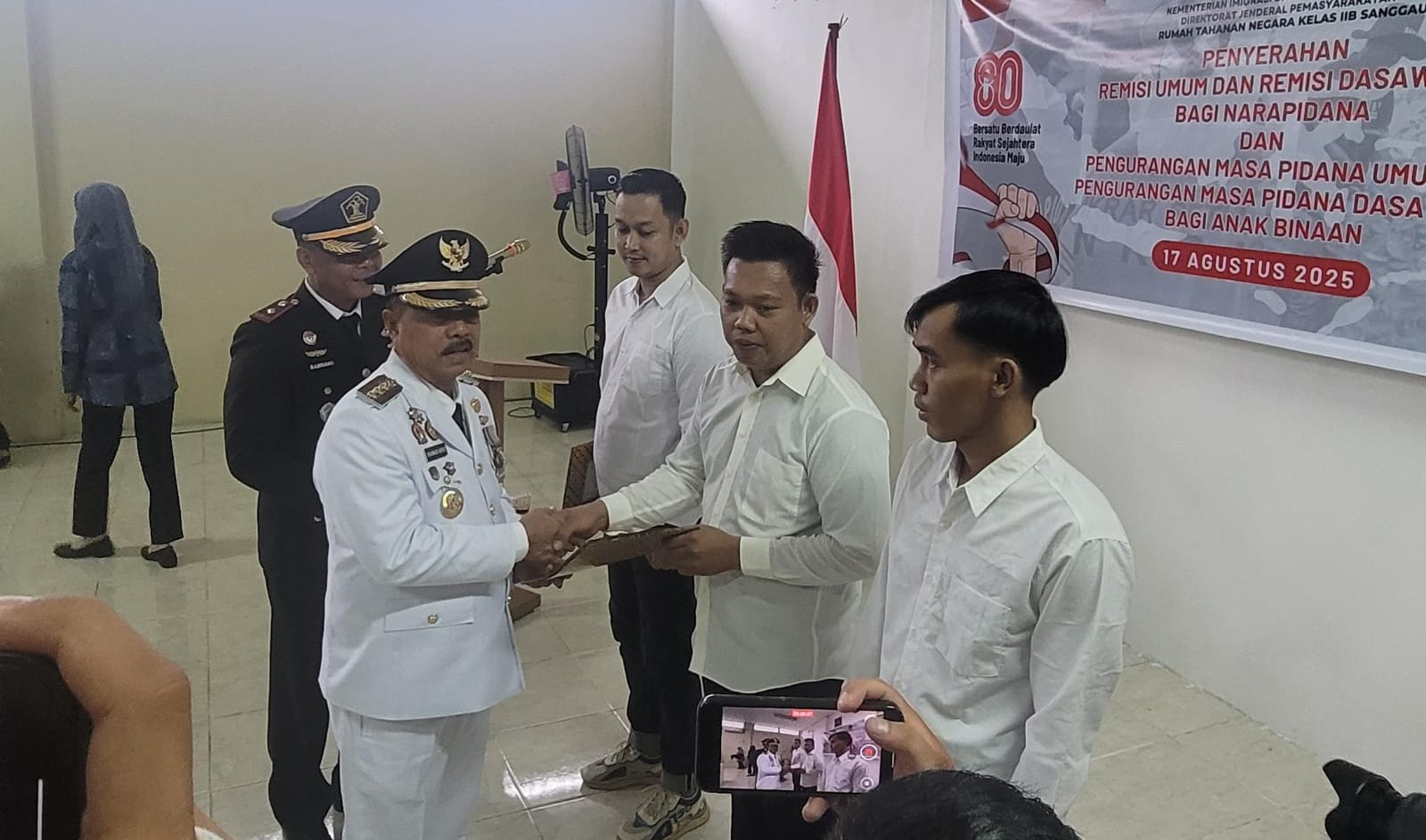 SANGGAU- Sekawanbaru.com – Dalam peringatan HUT Kemerdekaan Republik Indonesia Ke 80, Sebanyak 554 narapida di Rumah tahanan negara ( Rutan) kelas IIB Sanggau memperoleh remisi umum dan dasawarsa