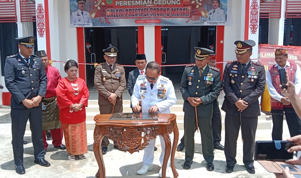 SANGGAU- Sekawanbaru.com – Bupati Sanggau, Yohanes Ontot meresmikan Gedung Galeri Prestasi Sabang Merah yang berlokasi di kawasan Taman Arongk Balopa, Kota Sanggau, Minggu, 17 Agustus 2025.