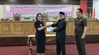 SANGGAU- Sekawanbaru.com – Dewan Perwakilan Rakyat Daerah (DPRD) Kabupaten Sanggau menggelar rapat paripurna ke-20 masa persidangan ke-3 tahun sidang 2025 dengan agenda penyampaian penjelasan Badan Pembentukan Peraturan Daerah (Bapemperda) terhadap empat rancangan peraturan daerah (Raperda) inisiatif DPRD. Dipimpin oleh Ketua DPRD Sanggau Hendrikus Hengki di ruang aula lantai tiga gedung DPRD Sanggau, Senin(15/9/25) dan dihadiri Wakil Bupati Sanggau Susana Herpena,, anggota DPRD, Perwalikan Forkompimda, Organisasi Perangkat Daerah (OPD), perwakilan Ormas dan tamu undangan lainnya.