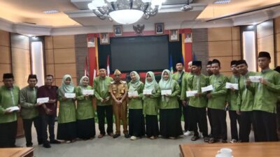SANGGAU – Sekawanbaru.com – Bupati Sanggau, Yohanes Ontot, didampingi Wakil Bupati Susana Herpena dan Sekretaris Daerah Aswin KHatib, menyerahkan bonus kemenangan kepada kafilah Musabaqah Tilawatil Qur’an (MTQ) ke 33 asal Sanggau yang berlaga di tingkat Provinsi Kalimantan Barat. Penyerahan berlangsung di Aula Daranante Kantor Bupati Sanggau, Senin (23/9), disaksikan sejumlah kepala OPD kabupaten Sanggau, serta pengurus LPTQ Sanggau.
