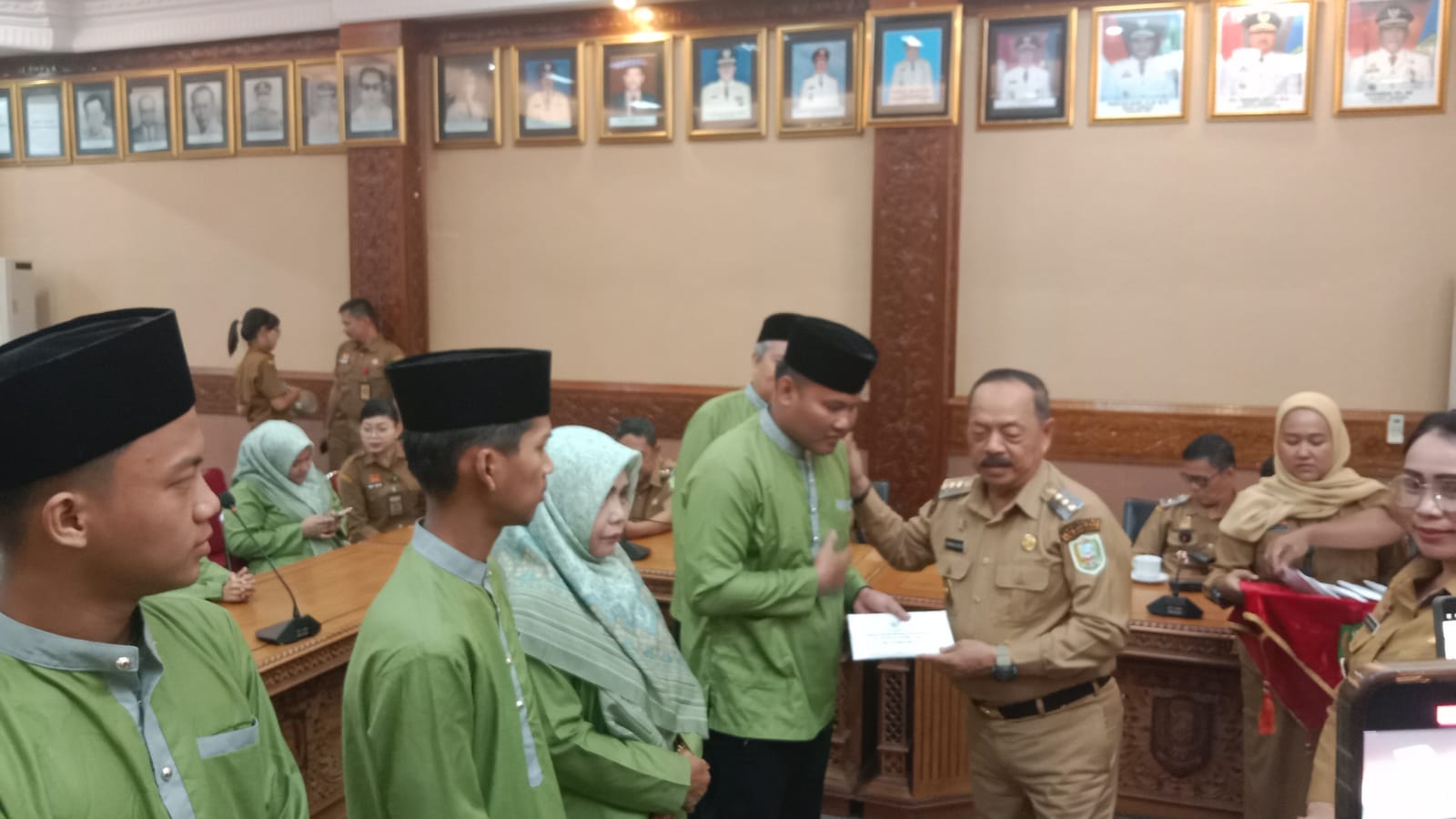 SANGGAU – Sekawanbaru.com – Bupati Sanggau, Yohanes Ontot, didampingi Wakil Bupati Susana Herpena dan Sekretaris Daerah Aswin KHatib, menyerahkan bonus kemenangan kepada kafilah Musabaqah Tilawatil Qur’an (MTQ) ke 33 asal Sanggau yang berlaga di tingkat Provinsi Kalimantan Barat. Penyerahan berlangsung di Aula Daranante Kantor Bupati Sanggau, Senin (23/9), disaksikan sejumlah kepala OPD kabupaten Sanggau, serta pengurus LPTQ Sanggau.