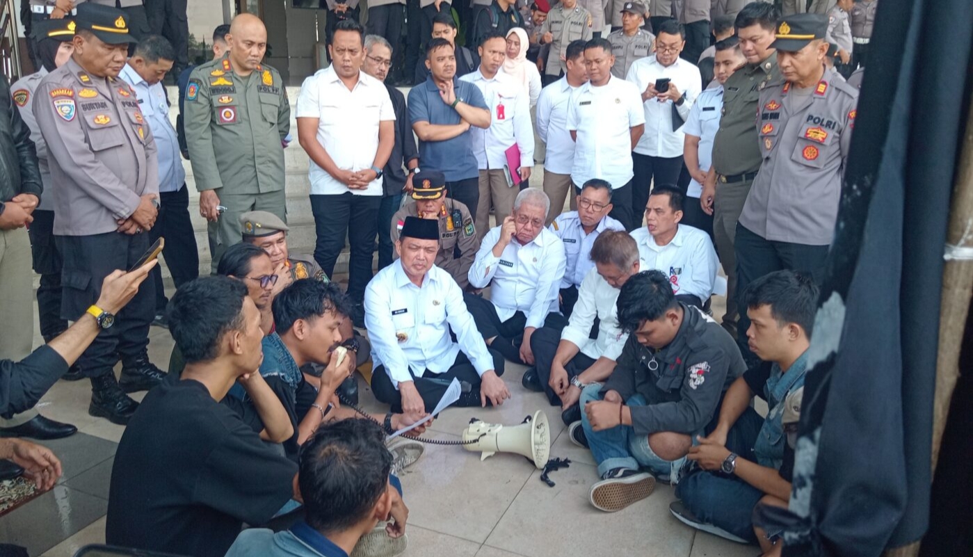 PONTIANAK – Gubernur Kalimantan Barat, H. Ria Norsan, mengambil langkah tak biasa dengan menerima langsung aksi unjuk rasa mahasiswa dari Solmadapar di teras Kantor Gubernur pada Rabu (24/9). Gubernur duduk bersama mahasiswa di teras yang masih basah usai diguyur hujan, didampingi oleh Sekda Kalbar dr. Harisson dan Kakanwil Kementerian ATR/BPN Kalbar Mujahidin Maruf.