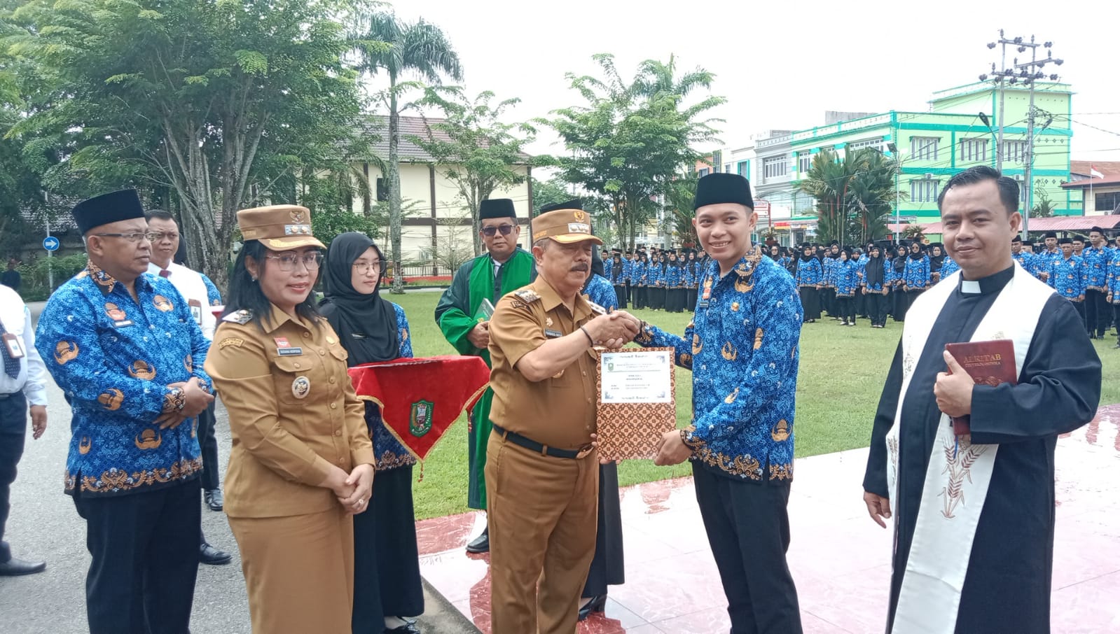 SANGGAU – Sekawanbaru.com – Bupati Sanggau, Drs. Yohanes Ontot, M.Si., secara resmi menyerahkan Surat Keputusan (SK) Pengangkatan Pegawai Pemerintah dengan Perjanjian Kerja (PPPK) Tahap II kepada 784 pegawai di halaman Kantor Bupati Sanggau, Senin (29/9/2025). Turut hadir Wakil Bupati Sanggau, Susana Herpena, S.Sos., M.H., serta Sekretaris Daerah Kabupaten Sanggau, Drs. Aswin Khatib, M.Si.