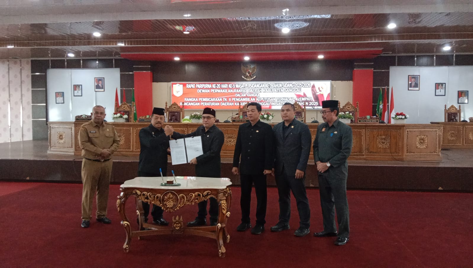 SANGGAU – Sekawanbaru.com – Dewan Perwakilan Rakyat Daerah (DPRD) Kabupaten Sanggau menggelar Sidang Paripurna ke-20 hari ke-5 Masa Persidangan ke-1 Tahun Sidang 2025–2026 yang mengagendakan Pembicaraan Tingkat II atau pengambilan keputusan terhadap empat Rancangan Peraturan Daerah (Raperda) inisiatif DPRD. Rapat berlangsung di Gedung DPRD pada Selasa (7/10/2025).