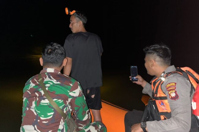 Pencarian dilakukan secara menyeluruh menggunakan perahu karet serta pengamatan visual di titik-titik tepian sungai yang dianggap rawan dan berpotensi terseret arus.