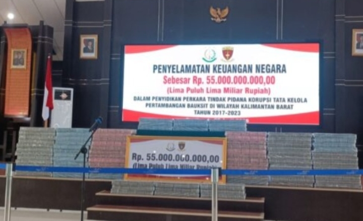 Dalam konferensi pers terbarunya, penyidik menghadirkan uang tunai sebesar Rp55 miliar sebagai bagian dari penyelamatan keuangan negara.